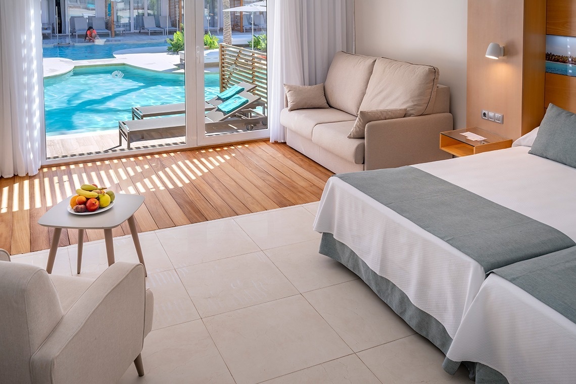Rooms of about 35 square meters, located at the foot of the pool with a 15-meter terrace and a private pool of 10 square meters integrated into the main one.